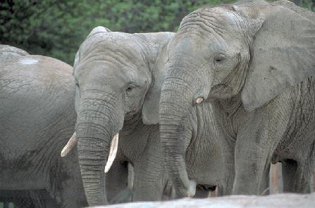 Male elephants are usually solitary as adults and only travel with the herds for mating. The elephant's loud trumpeting helps them locate each other across the vast savanna. Elephants low rumbling sounds travel for miles across the savanna. The elephant's skin is thick, but it still needs protection from the sun and parasites. Regular bathing and wallowing in mud provide a good coating to protect their skin.